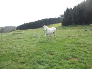 Right after taking Sol's saddle off a local of the village was exercising his cob with a cart along the track above our field and the three 'musketeer' horses had fun running around the field together. It was amazing to watch Holly lead the boys and them back her up as she squared up to face the strange horse out of the field...cool ;)